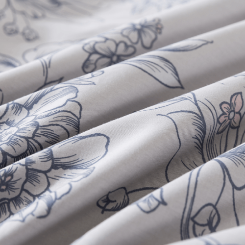 Transform your bedroom into a serene and elegant sanctuary with this exquisite bedding set, featuring delicate floral patterns that exude unique charm. The soft gray background adorned with intricate blue flowers evokes the tranquility of a morning garden, creating a peaceful and refreshing atmosphere. Whether basking in the morning sunlight or unwinding under the gentle glow of evening lights, this bedding set offers unparalleled comfort. Crafted from premium fabric, it ensures a quality night's sleep, enveloping you in warmth and relaxation with every touch. More than just a visual delight, this bedding set provides a tactile pleasure that enhances your home?¡¥s sophistication. Make your bedroom a tranquil garden and enjoy a distinct and delightful living experience.